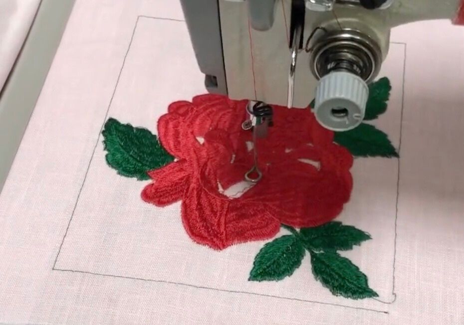 - Circle and hibiscus-inspired embroidery with eyelet accents
